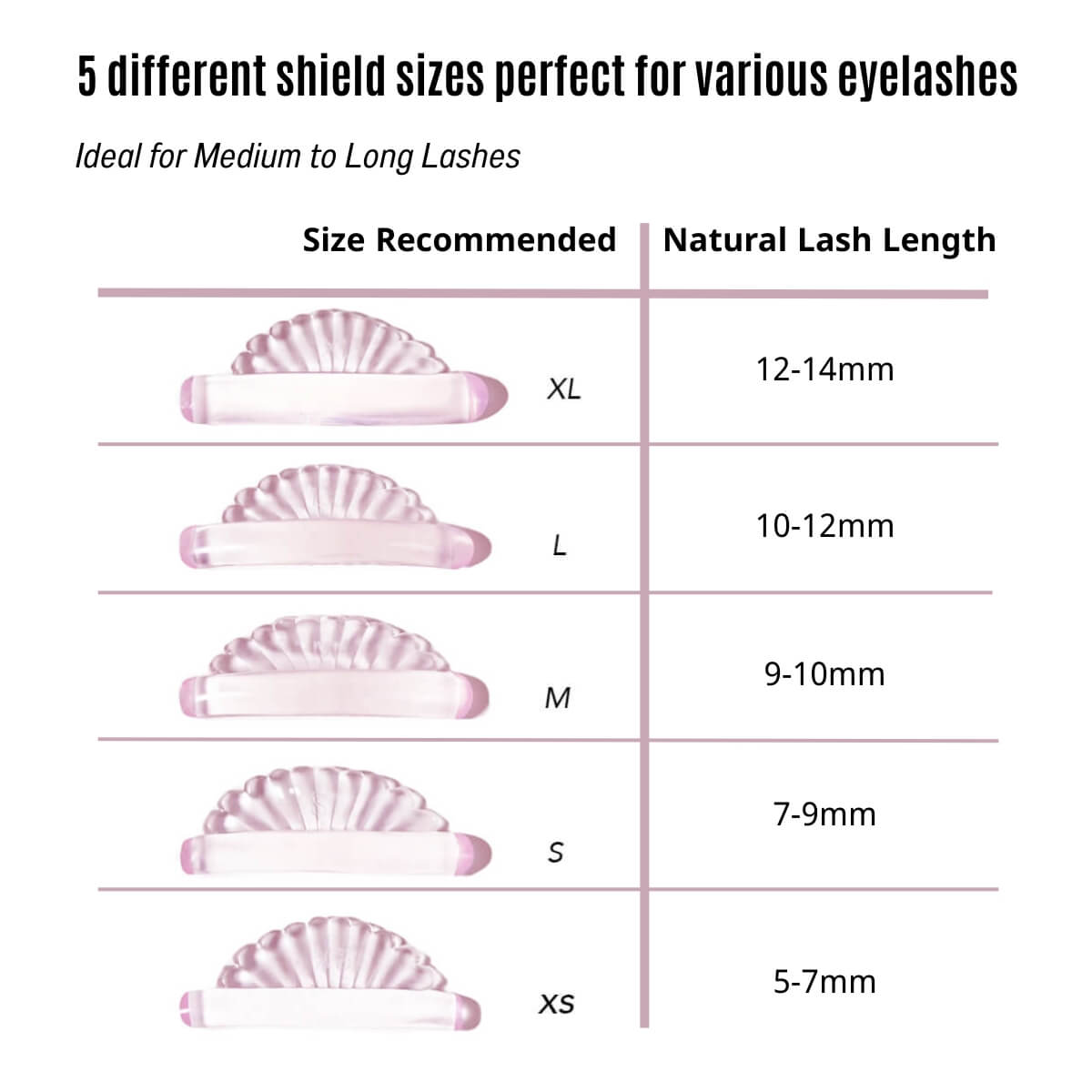 Multiple Sizes: Available in 5 sizes—XS to XL—to suit different lash lengths and eye shapes.